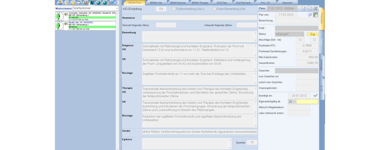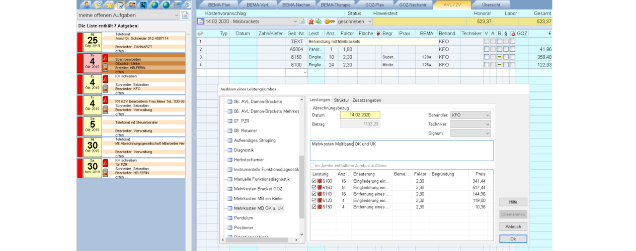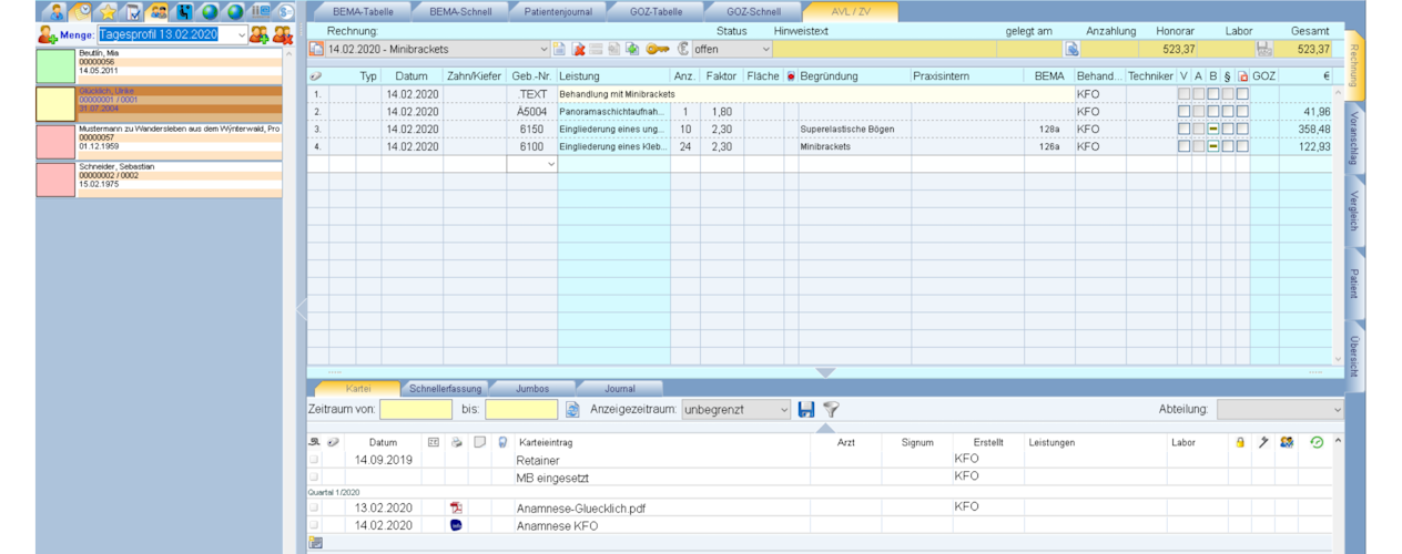 - Behandlungsplanung & Abrechnung: Bema, GOZ, AVL/ZV, PA und KBR