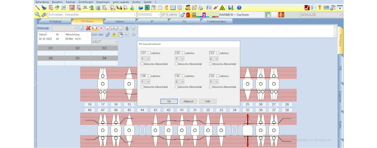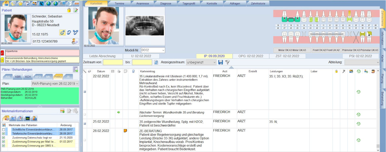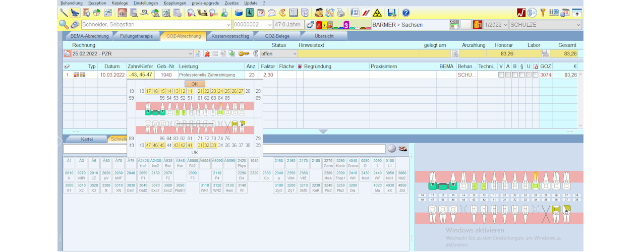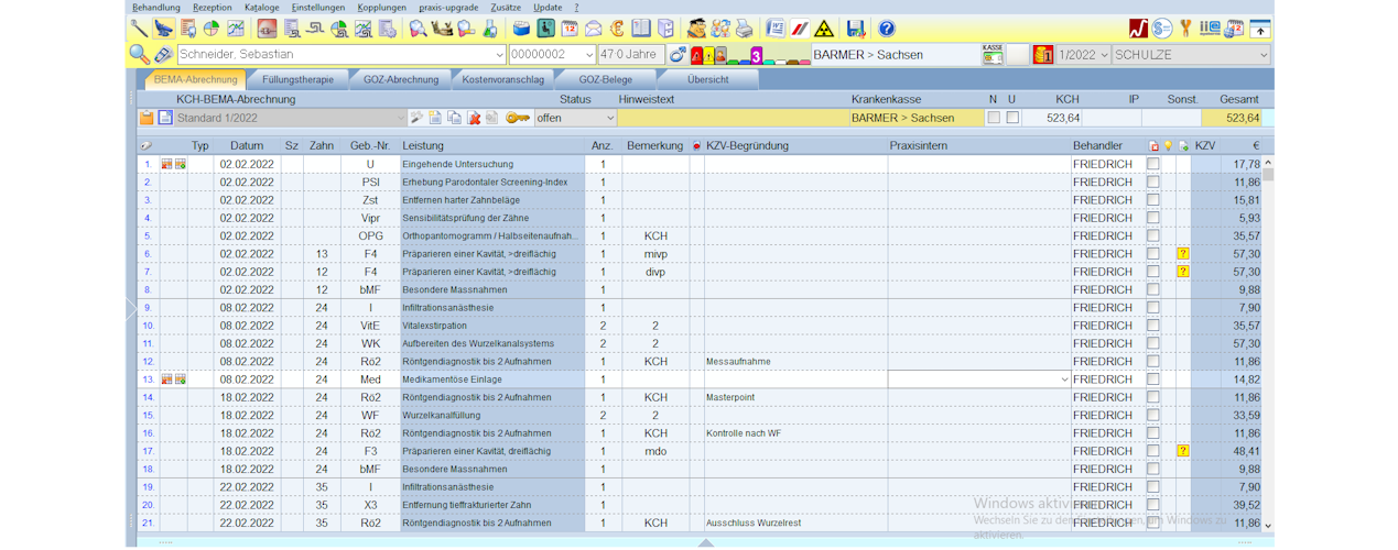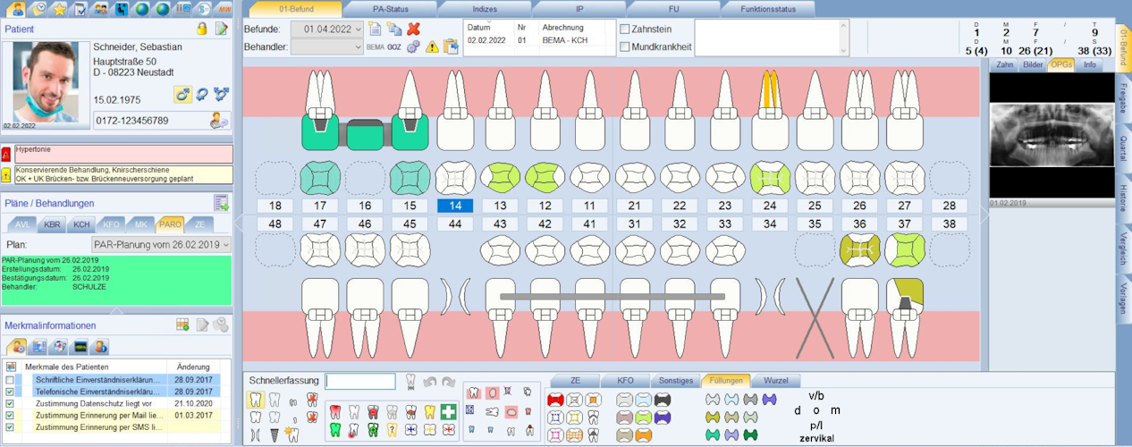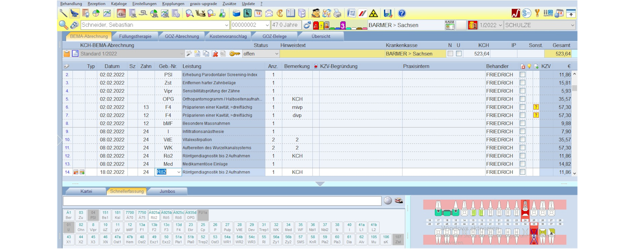 - Behandlungsplanung & Abrechnung: KCH, Mehrkosten Füllung, ZE, KBR, PA